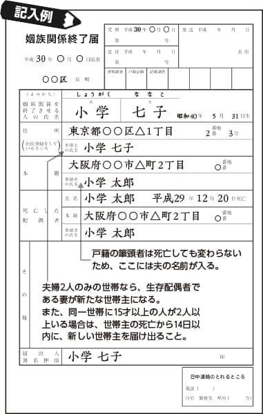 世帯主が亡くなった場合、世帯主変更届(住民異動届)を先に出す必要があります。