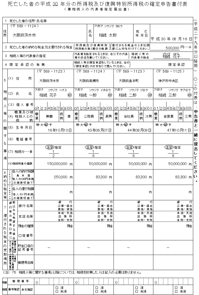 所得税の準確定申告書(第2表)については、次の二点に留意しましょう。