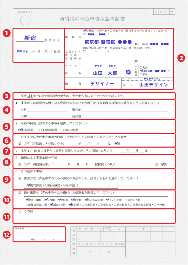 所得税の65万円控除を受ける場合、「青色申告承認申請書」の書き方で注意するのは、次の2点です。