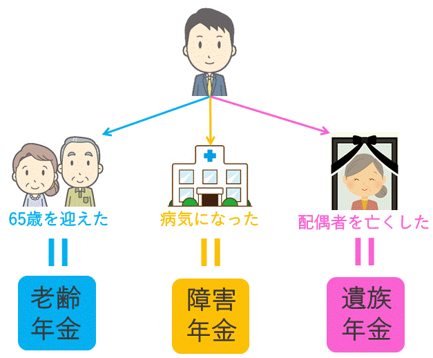 ところが、「老齢年金」というのは、年金がもらえる三つのパターンの一つにすぎなかったんです・・・