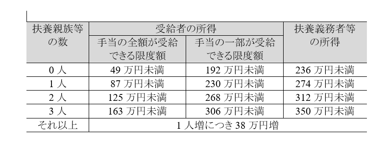 児童扶養手当の対象者と所得制限